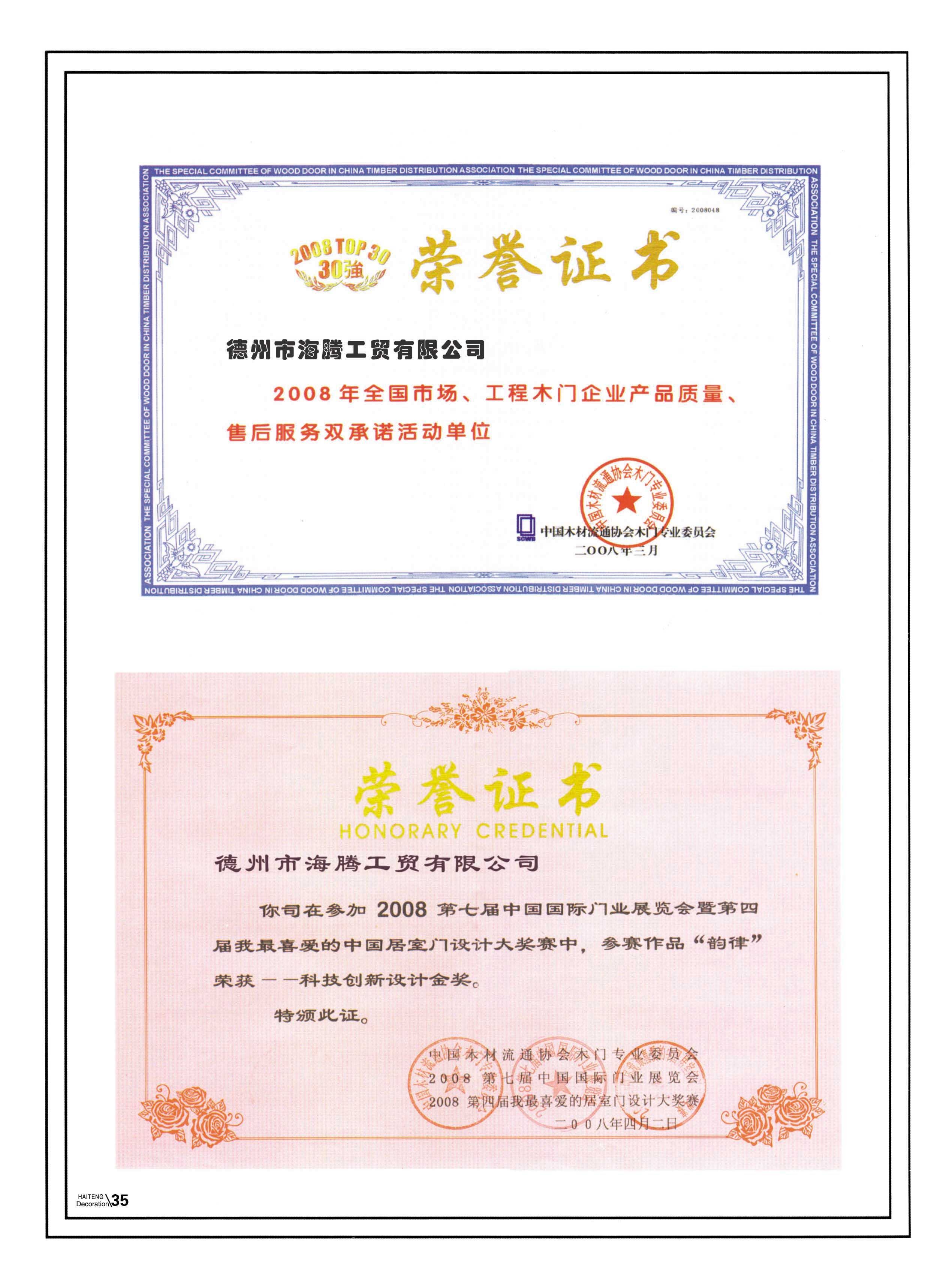 • 榮譽證書